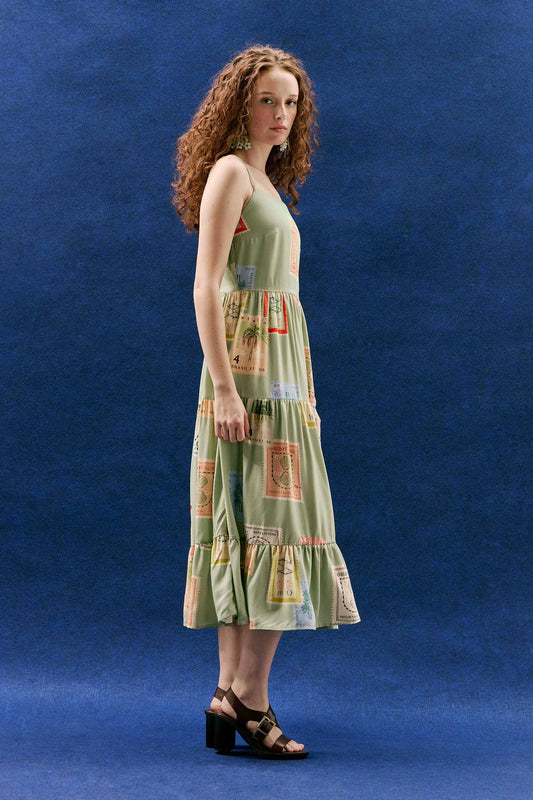 PP P M G GGVestido Gênova Lembranças de Verão Listras